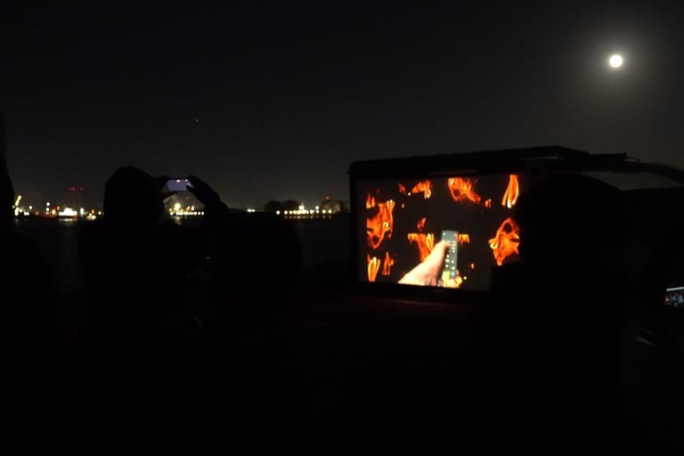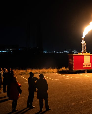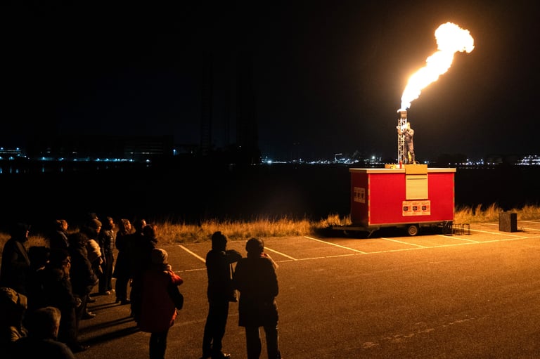 Op een dijk aan de Westerschelde bij Ritthem, tegenover de Terneuzense Dow-fabrieken: de film Inextinguishable Fire van de Amerikaans-Canadese performancekunstenaar Cassils, een VJ-set rond heksen en hellevuur van de Duitse VJ @metafrau en DJ Moehr, een performance met vlammenwerper door Dani Ploeger en een tekst van folklorist Marco Evenhuis.